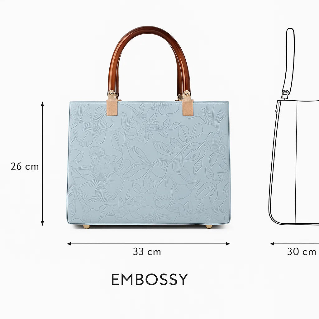 Introducing the Embossy – a floral-inspired statement bag crafted for women who love elegance with function. With its embossed design, structured silhouette, and golden accents, this satchel is made to turn every occasion into a style moment.