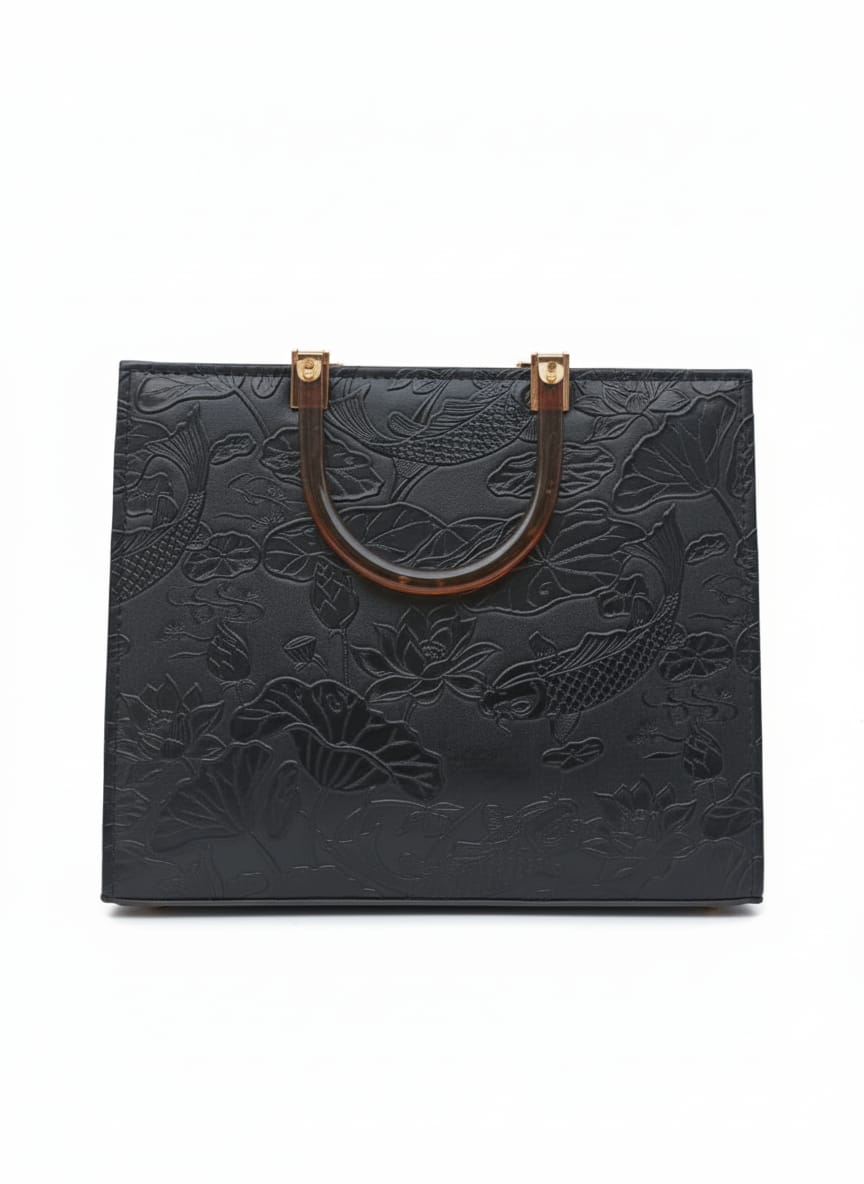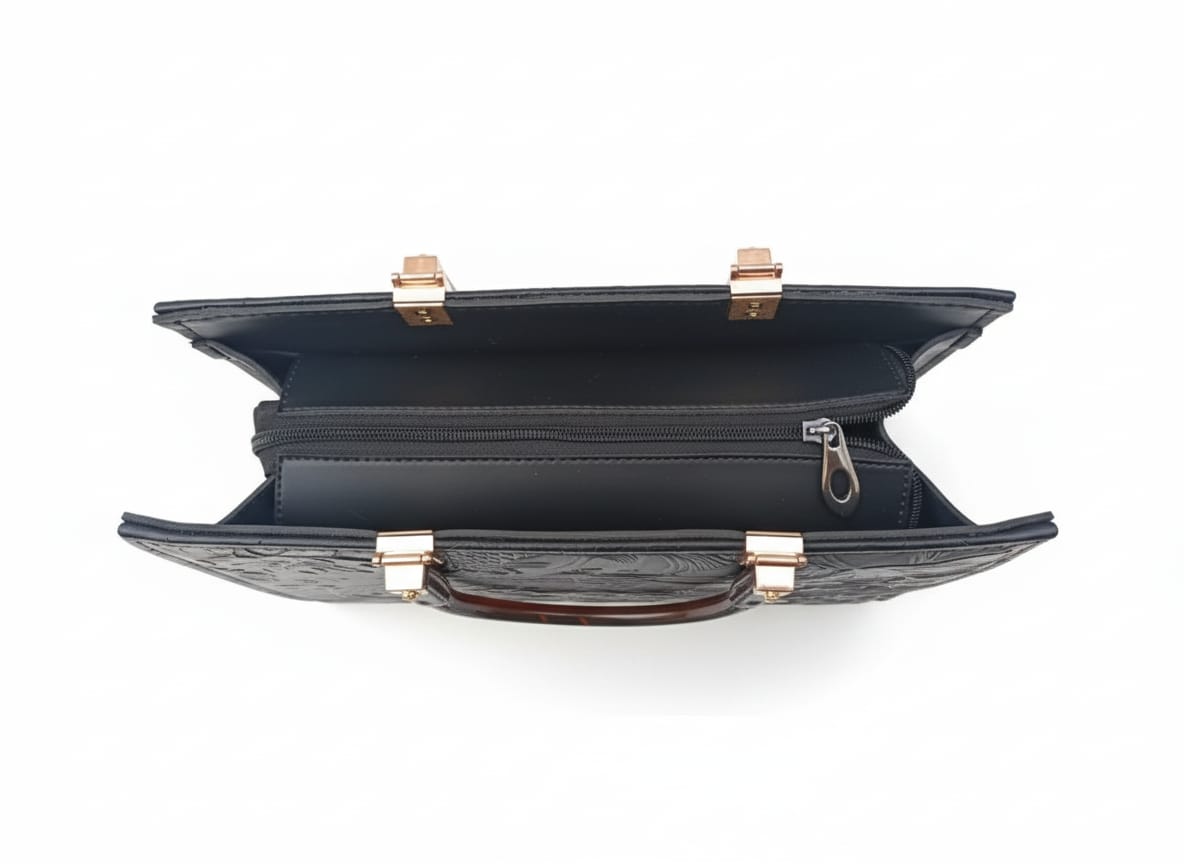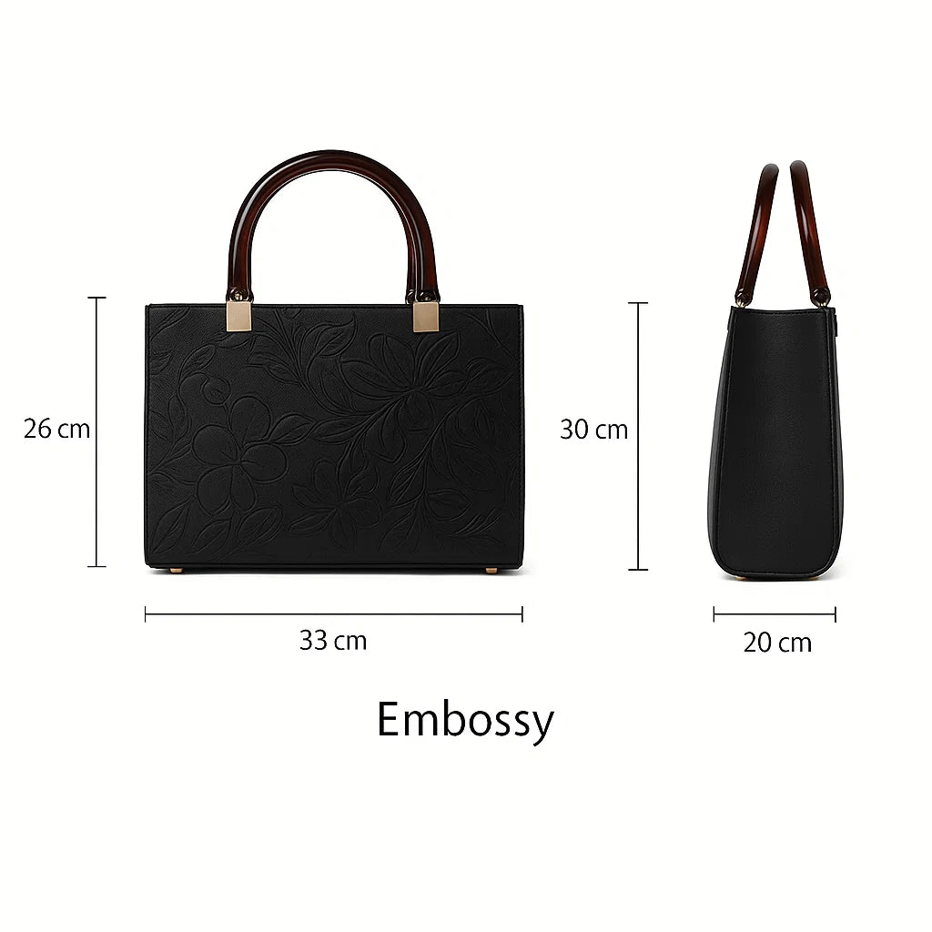Introducing the Embossy – a floral-inspired statement bag crafted for women who love elegance with function. With its embossed design, structured silhouette, and golden accents, this satchel is made to turn every occasion into a style moment.