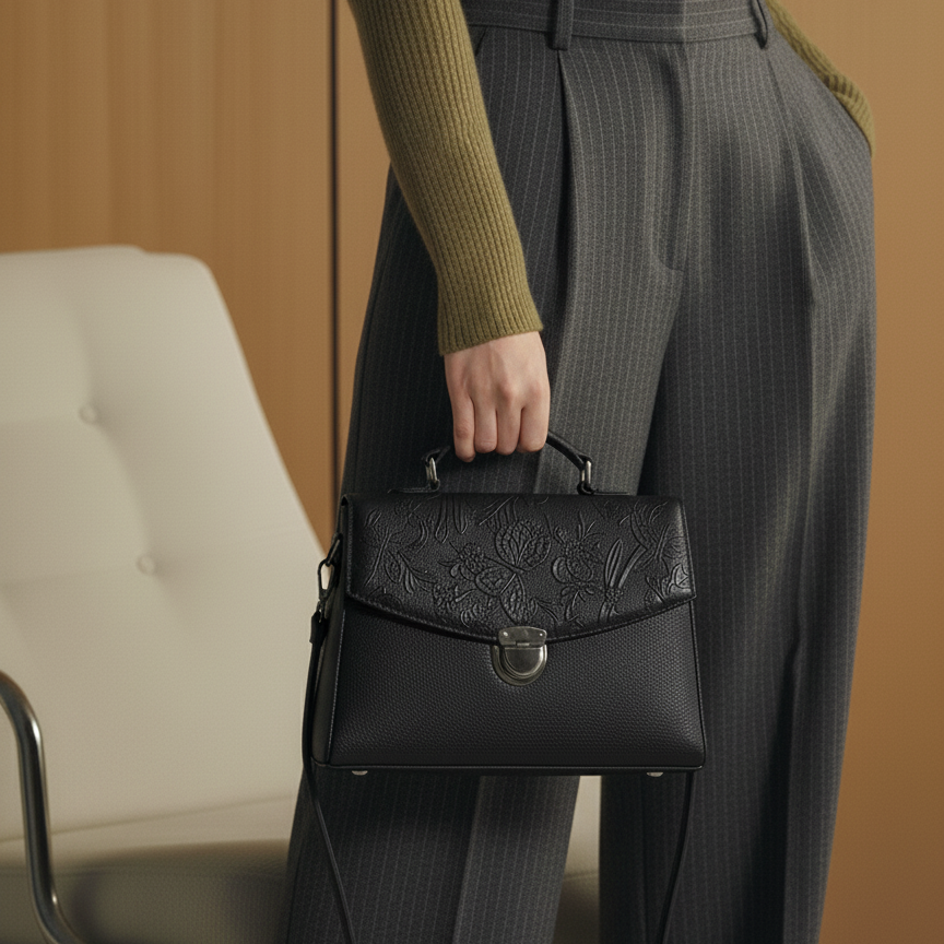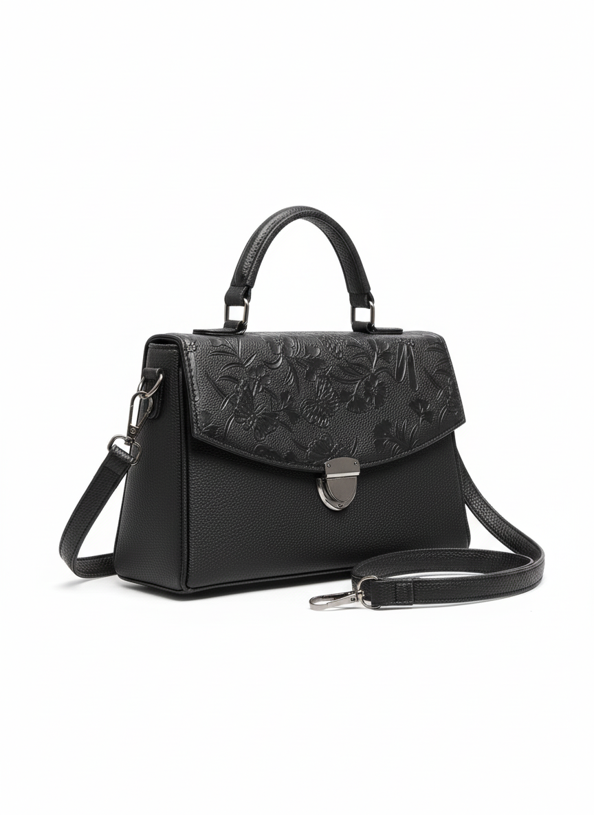Meet the Satchel — a timeless statement of grace and sophistication. Crafted from premium embossed rexin with delicate floral detailing, this structured bag blends luxury and practicality effortlessly. Its clean design, secure lock closure, and refined texture make it ideal for both formal and casual settings. The soft beige tone adds a touch of understated elegance, while the sturdy top handle ensures comfort with style.
